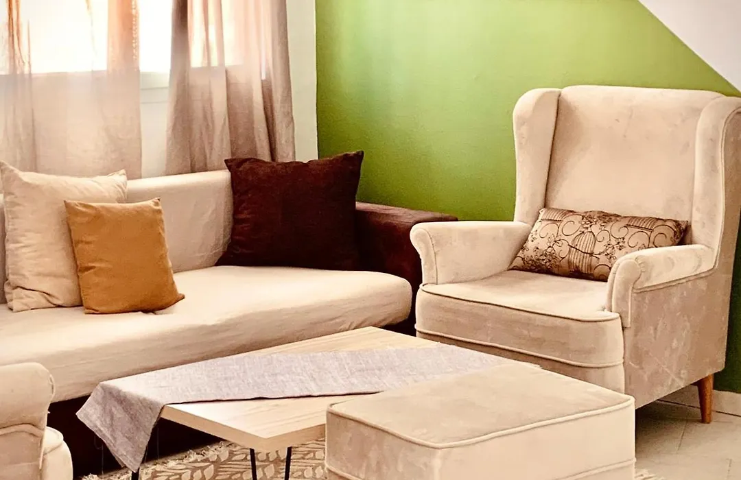 You will find a fully furnished kitchen at the accommodation. The apartment is right around the corner from the La Marsa Plage city rail.